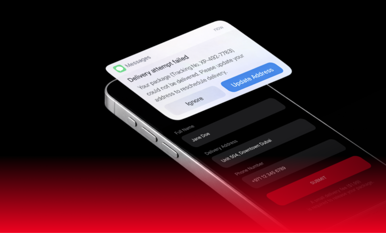 - Sender ID Spoofing: Attackers use illegal SMS gateways to merge fraudulent messages into legitimate message threads from trusted postal services, making them nearly indistinguishable from genuine communications.